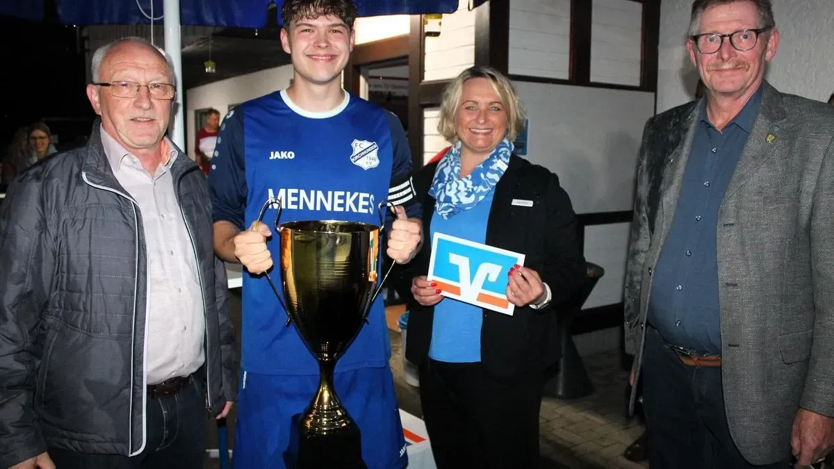 Neben dem neuen Gemeindepokal erhielt der FC Kirchhundem 400 Euro Siegprämie von der Volksbank Sauerland. Die SG Albaum/Heinsberg bekam 300, der SV Rahrbachtal 200 und die SG Saalhausen/Oberhundem 100 Euro.