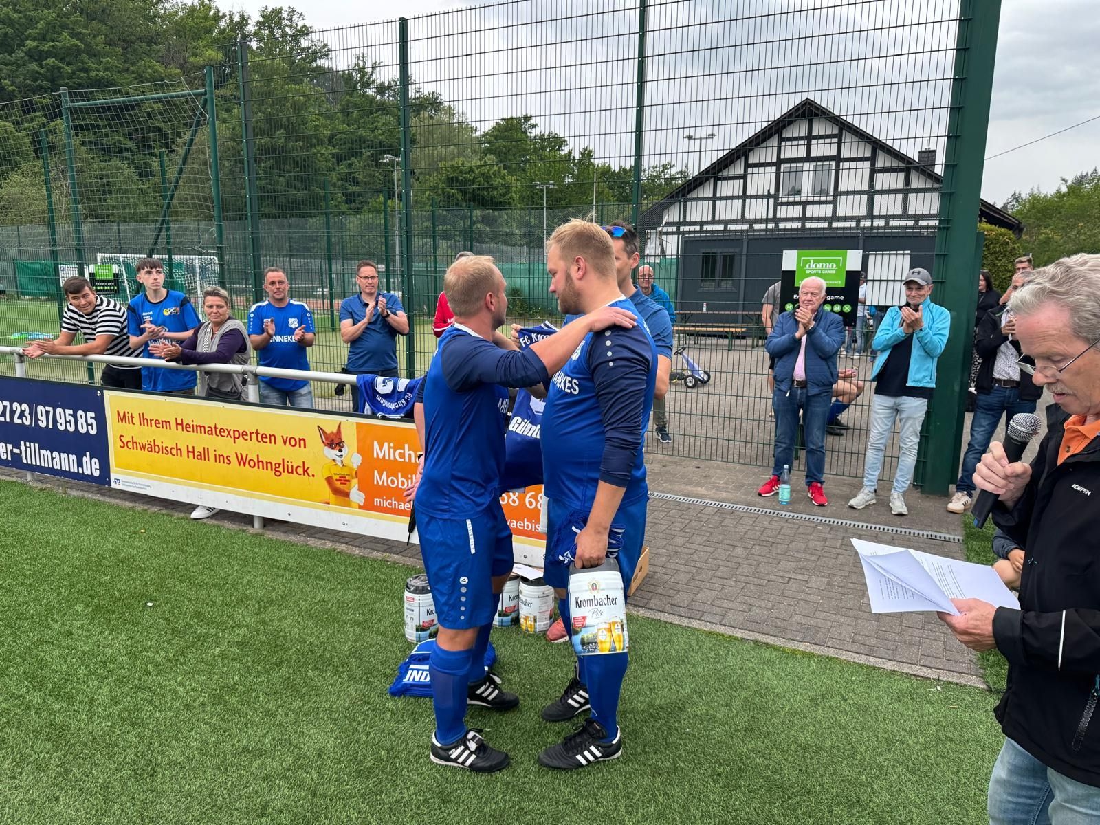 Das Lob kam postwendend zurück: „Julian war der Mann des Finales. Vielen Dank, dass er eingesprungen ist. Insgesamt war es sicher ein glücklicher, aber nicht unverdienter Sieg, weil wir fast eine Stunde in Unterzahl gespielt haben“, sagte Trainer Moritz Thöne und sein Trainerpartner Marco Holterhoff ergänzte: „Ich habe lange nicht mehr ein so tolles Finale gesehen. Es war sehr emotional. Rahrbachtal hat uns alles abverlangt. Wir mussten nach der berechtigten Gelb-Roten Karte lange in Unterzahl spielen. Und wir hatten auch etwas Glück, dass ein Schuss von Schürmann nach etwa 70 Minuten nur an die Unterkante der Latte flog. Bei 1:3 wäre es eng geworden.“